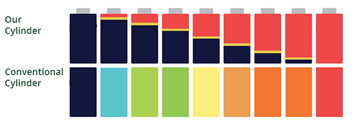 We use a smart and hot water cylinder that connects directly to the solar panels. The tanks use novel top-up technology to ‘float’ hot water on top of cold. This means you can selectively ‘heat what you need’, rather than the whole tank. A sensor within the tank ensures you’ll always know how much hot water is available. Top-up reduces heat losses and improves reheat speed from cold 5x. This helps save money, time and energy. The tanks deliver hot water up to 10x faster than conventional tanks.